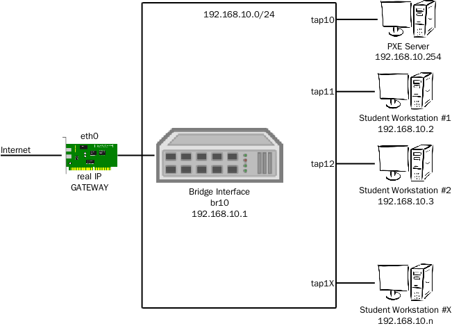 請注意上述設定中之 gateway 要為本機 ip,而 bridge ports 要設為 tap0,設定完畢後